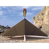 ソロキャンプには丁度いいサイズで、ワンポールで自立するタイプの小型タープとなっておりポールの代わりにトレッキングポールやパドルでも対応することが可能。