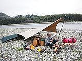 タープは上質なTCポリエステル(ポリエステル65%、綿35%)素材をしようしており、コットンの隙間が空気を通してくれるので結露もしにくくカビの心配も少ないタープです。
